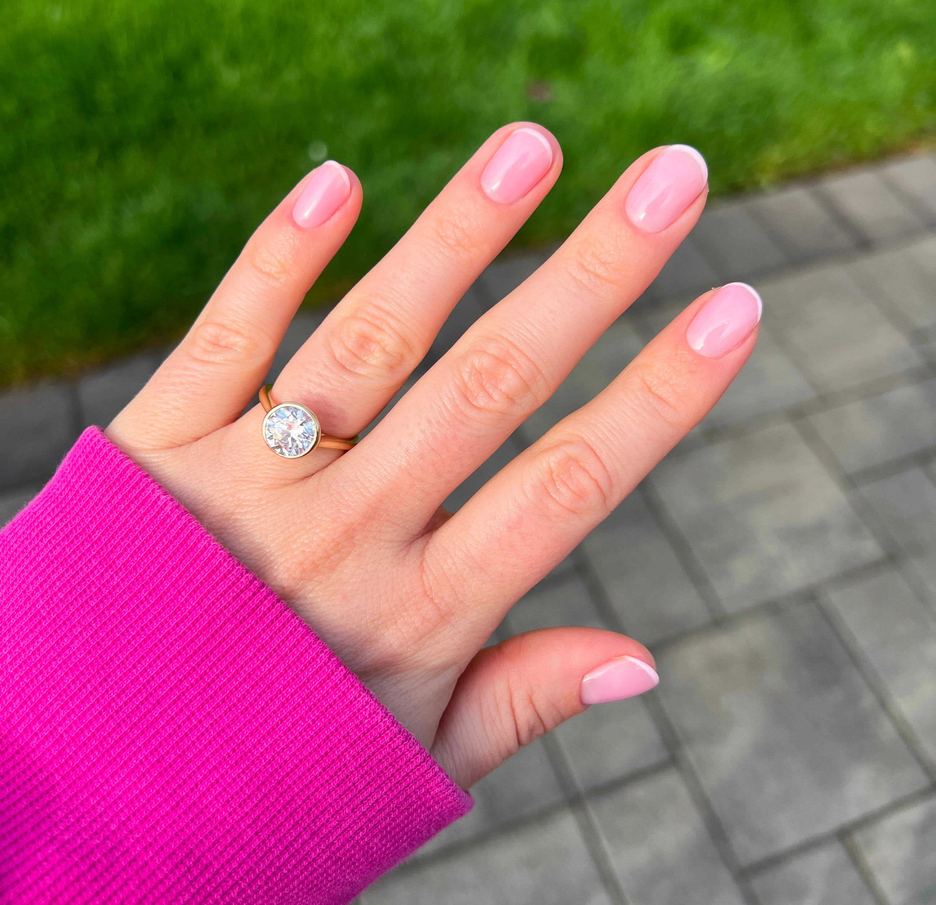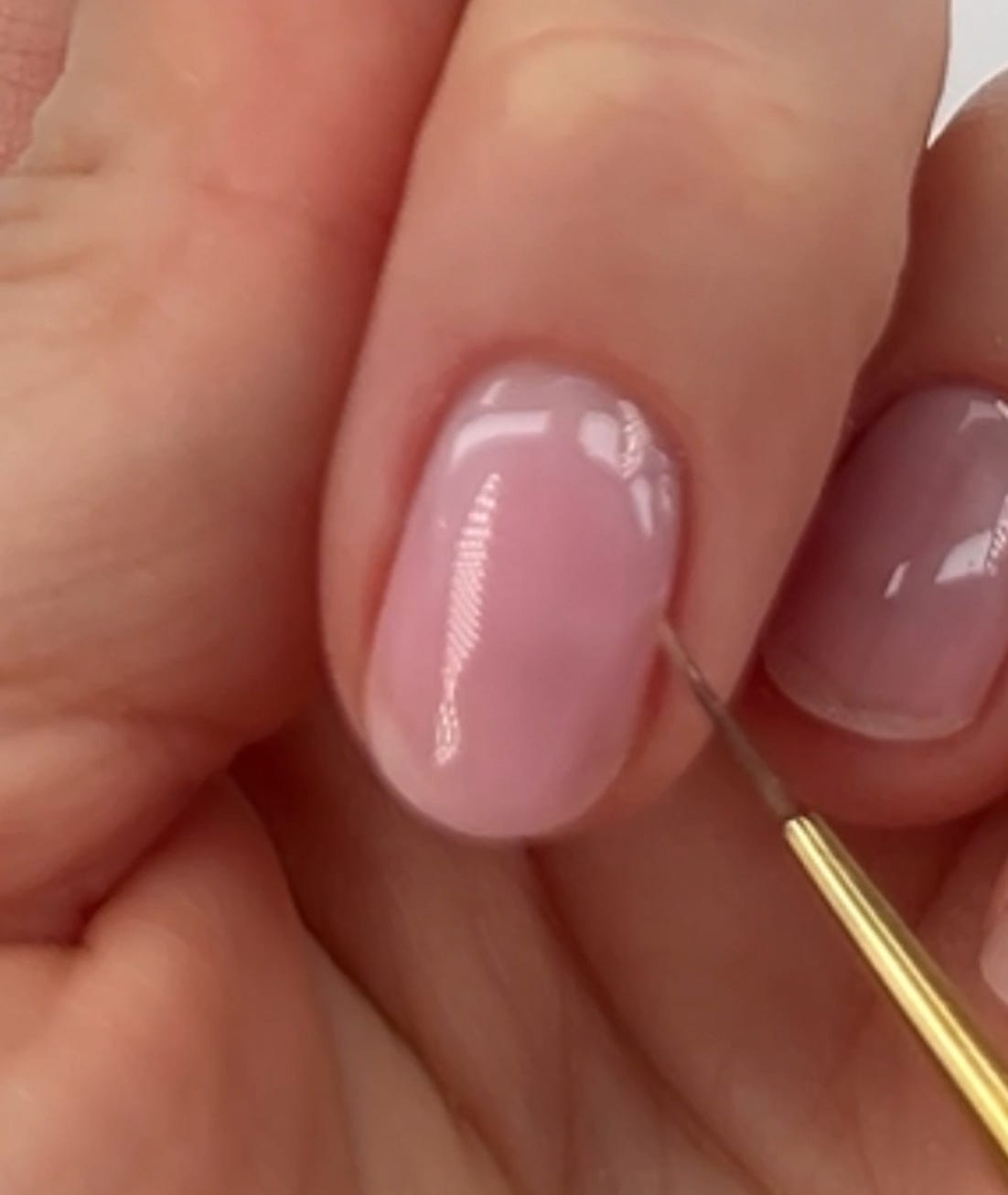 Pick a sheer, neutral color. My favorite product to use for this is a tinted builder gel base (like Nail Thoughts!) because you don’t need to do a bunch of different layers, you can just apply the gel with an overlay and do a top coat and be done! These also have a really unique, jelly-like, sheer, but also not too sheer finish.
