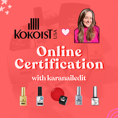 If you want to become certified in Nail Thoughts and Erica’s ATA and/or Kokoist, make sure to sign up asap! And if you have any questions at all, you can send me an email at karanaileditbusiness@gmail.com or just reply to this email!