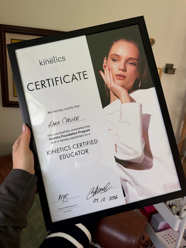 At this training, we learned about when to use all of the different Kinetics’ products and how to properly apply them all - ranging from soft gels, color gels, hard gels, top coats, skin care and more (stay tuned to my socials for more tutorials)! Some of my favorite products that I tried were:
